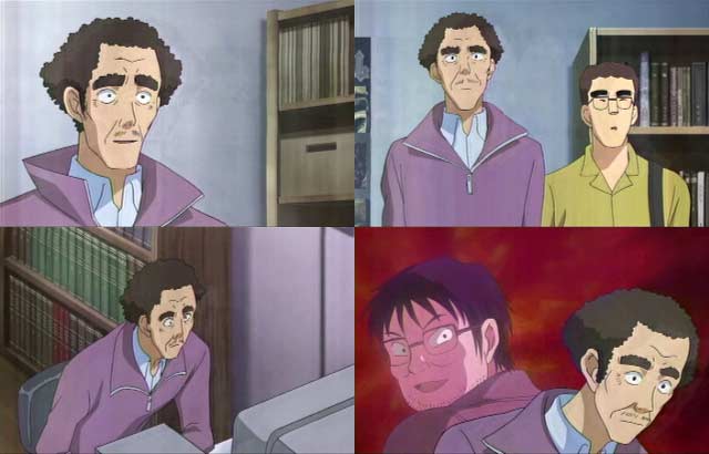 四段目左、歩いてるシーンだけど、メリーゴーランド型の動画、最早コナンでは恒例の手抜きであります。