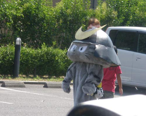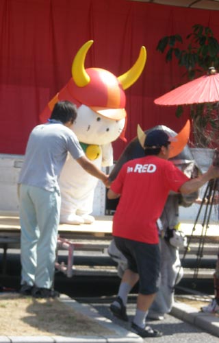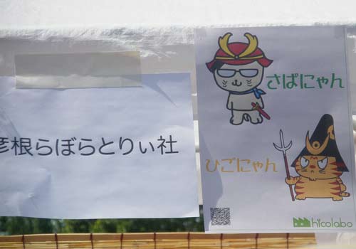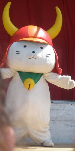 楽屋のある棟から、彦根のねずみ色「さこにゃん」が堂々登場。