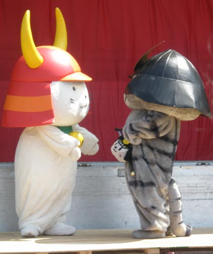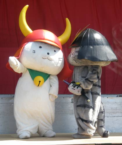 祭のオープニングは、彦根のおモチとねずみ色の酒豪ネコが登場する。そして、午後からは「赤い彗星」の名にちなんで、『機動戦士ガンダム』のシャア・アズナブル役の池田秀一氏とアムロ・レイ役の古谷徹氏のトークショーが開催されるという。