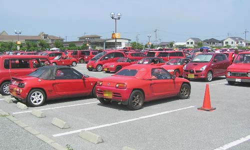 さて、赤祭りもうひとつのビッグイベントが、赤車勢揃い。