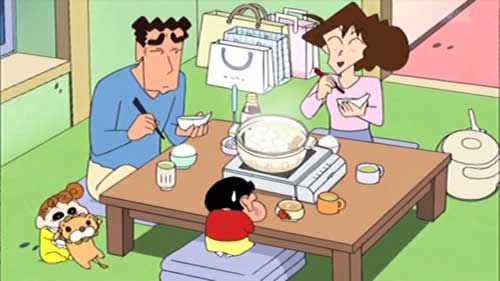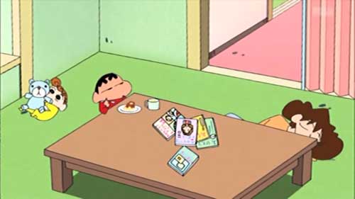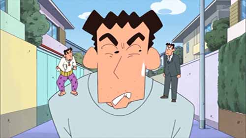 あと、渡り廊下走り隊キャラが、大物ゲスト声優キャラにありがちな、レギュラーキャラとの出合い方がステキな感じだと印象付ける演出されたり、そのキャラについての設定の懇切丁寧な説明があったり、レギュラーからの優遇的な絡みの描写や演出が施されたりするのではなく、ドタバタの中で野原家に割り込んできた劇中の一キャラ程度の扱いになってたので、見やすかったなァ