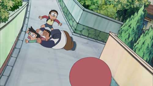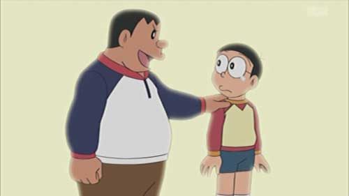ジャイアンが頼もしくも「任せろ」と言った直後のカットで、ドラえもんを乱暴に扱うギャップのあるジャイアンのカットをいきなり映し、「ちょっとちょっと、なんか楽しんでない?」というスネ夫のツッコミをスネ夫を映さず画面外からの声で演出していたのは、あまり『ドラえもん』にない省力が効果的な笑いの演出だったな。