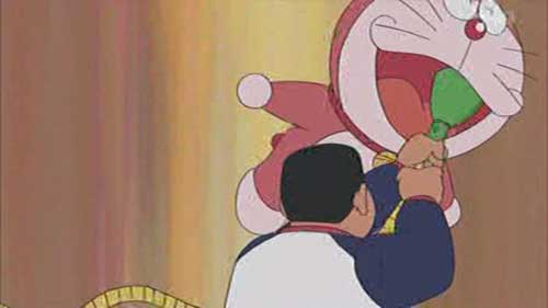 ウイルスの大群に襲われて、のび太がお馴染みのセリフ「ドラえもォーん」と叫んだら、直後のカットでまったく頼りにならないドラえもんが出てくるところも似たような感じの演出だ。