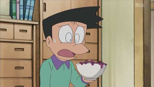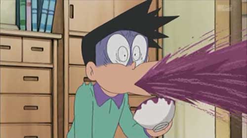 ジャイアンシチューを不味くて噴き出したスネ夫に怒り心頭だろうジャイアンが、「ちょっとスネ夫くんとお話がある」と満面のジャイアンでスネ夫をひきずっていって画面からフェードアウト、制裁シーンの描写や音による表現なしに終わるという演出になっていたところは、わさドラになかなかなかった演出で、大いに笑える。