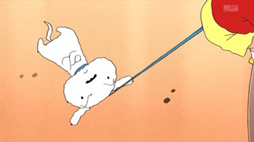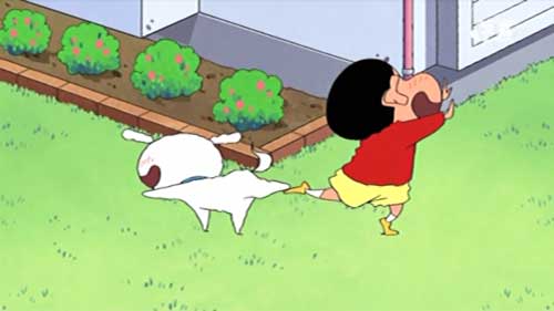 一コマ作画でしんのすけに引きずられていくところまで含めて、シロかわいい。