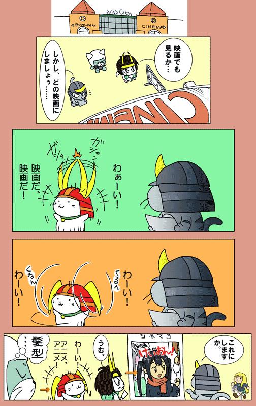 ちなみに、絵の方にも描き入れましたが、シネマの前には、『けいおん!』の映画ポスター代わりに、豊郷近辺にあるはずの、ムギちゃんの飛び出し小僧がなぜか持ち込まれて展示してあります(笑)