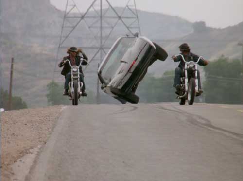 ミニチュア撮影の場面になると、それまでのシーンと質感というかライティングが違うので、変わった途端によく分かるし、何より、キットの外側だけ作ってタイヤぐらいは回るようにしただけの中身空っぽのミニチュアカーを使っているのか、キットの動きにてんで重みが感じられなくて、迫力減少…