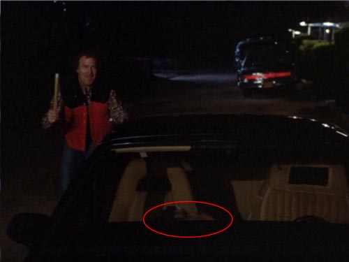 マイケルに嫉妬した町のトラッカーたちがキットに悪戯するモーテルのシーンで、無人のキットが動く際、カメラに映らない位置で中に隠れているスタッフの姿が助手席にちらりと見える(笑)