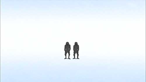 でも、恐怖のDVD再生後の、おどろおどろしいタイトル字に反した妙に軽く明るいBGMというギャップ、何も映っていない真っ白な平穏そのものの画面の「奥」から何気なく、そして徐々に近づいてくる謎の人影、そしてその人影の突然の変容…という演出は、ガチホラーっぽいアイデアのかかったもので、興味深かった。