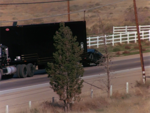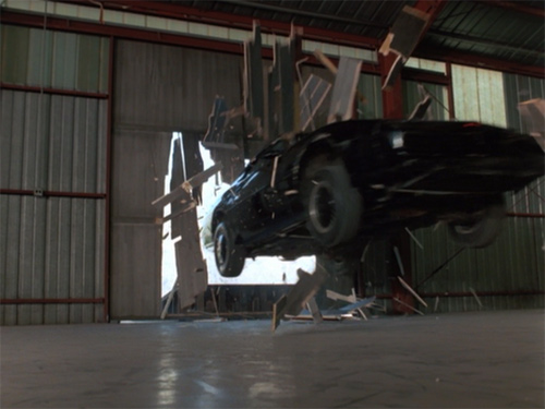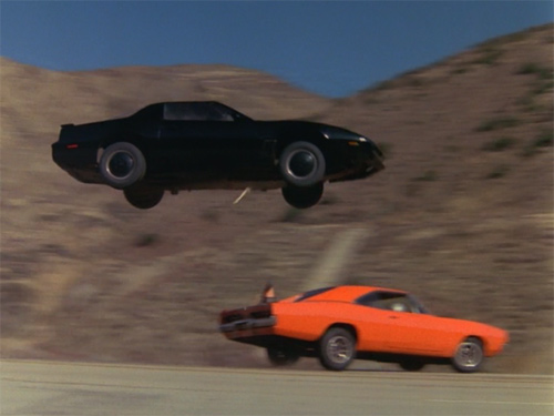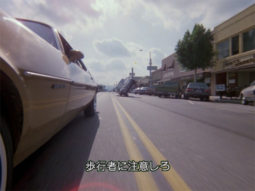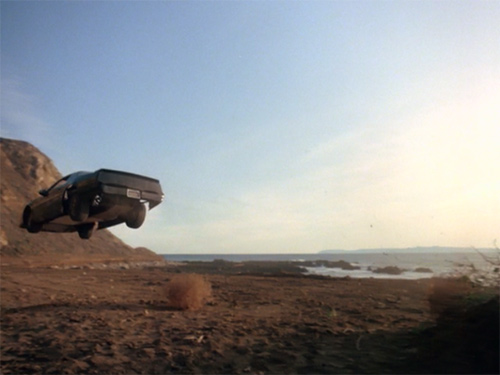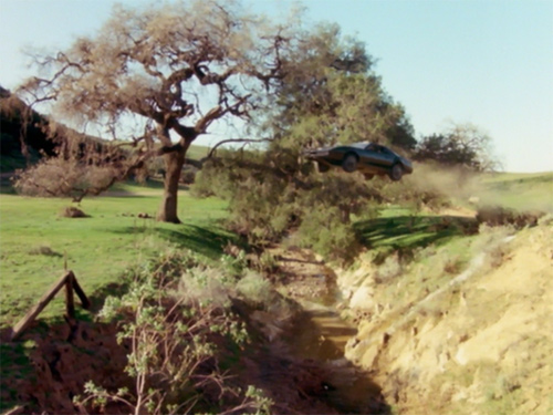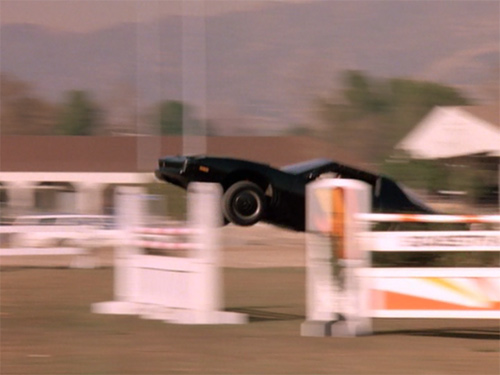 …同時に、ジャンプの様子をカウル横の低位置に取り付けたカメラで撮影した迫力のショットにチューブ(『ナイトライダー・コンプリートボックス』によるとカメラのケーブルが外れてしまったもの)が映っているのが気になることでも印象的なシーンだが(汗)