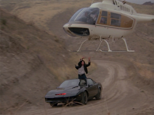 醒める話をすると、序盤のパーティ会場から飛び出していくシーンで、入口に回ったキットのドアが自動で開くが、座席と後部座席の隙間から、ドアを押し出した手がちょこっと出てるのが映っている。