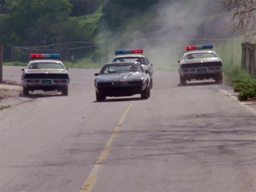 あと、後半、脱獄したマイケルを探す警察の追跡を撒くために、キットがおばちゃん乗せて町中暴れまわって多数のパトカーを翻弄してるところは楽しい。