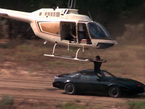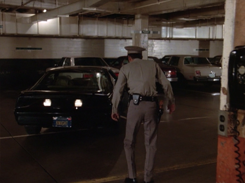冒頭暴走中のキットを制止しようとしてターボブーストで逃げ切られた警官が、中盤にも出てきて、キットと繰り広げるコントが笑える。