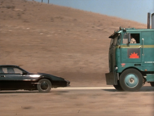 この話でキットは、バック走行でトラックの追跡を振り切る。