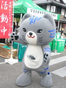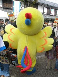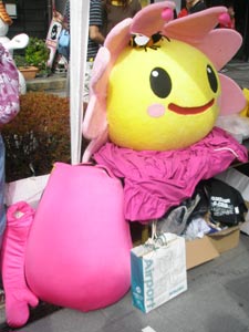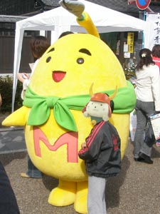 それがこのマスコットの性格設定かな、と思ったら、人が近づいてきたら、今にも揉み手しそうな低姿勢で物欲しそうに(写真撮ってくれませんか?)と近寄ってきたりして、キャラがよー分からん(笑)