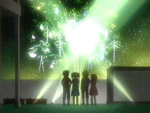 クライマックスを彩る空中浮遊は、1話の冒頭で使われていた、苦労して作ったであろうご町内の3DCGマップが、その華麗さを演出するために有効に活用されている。